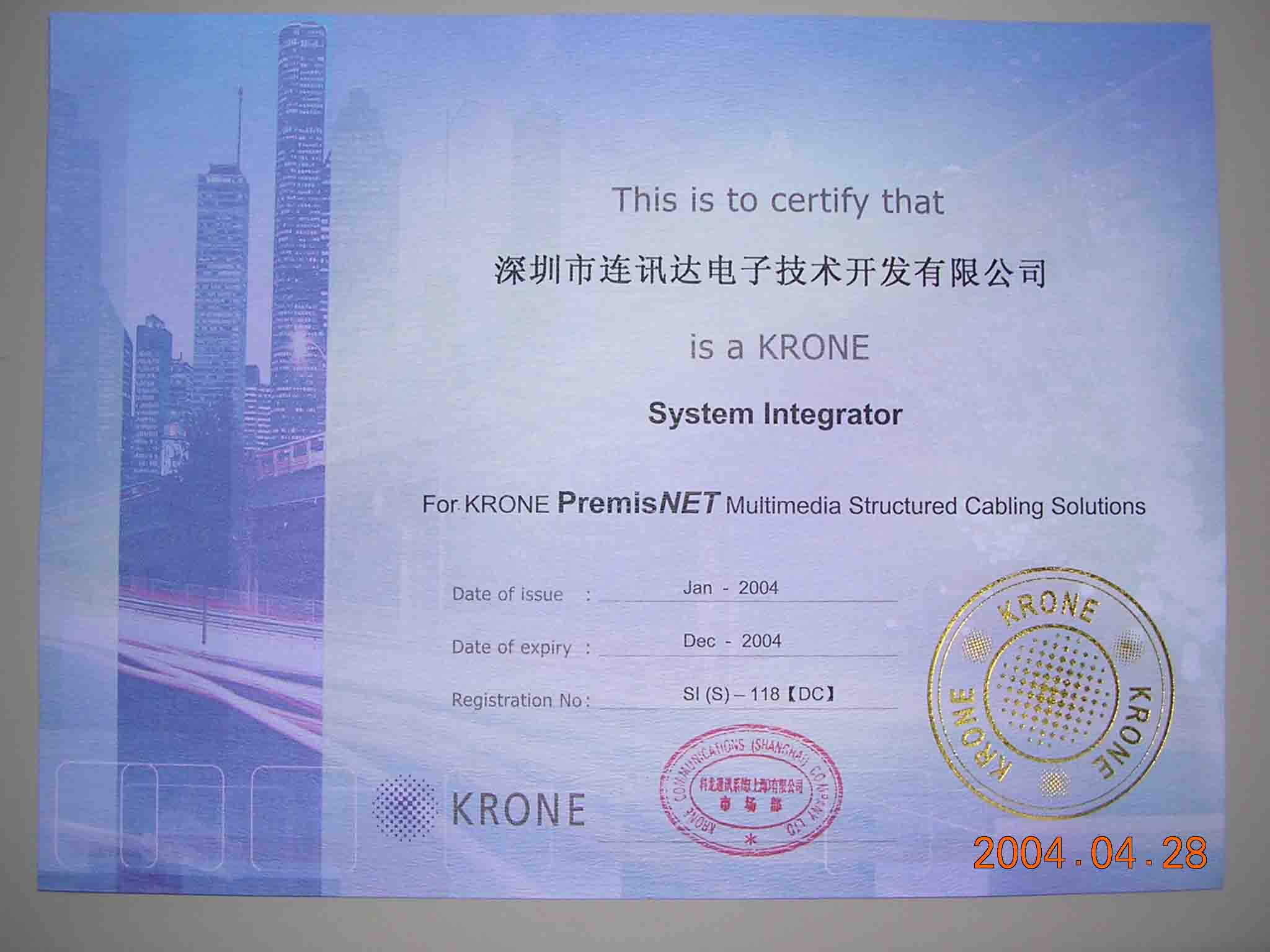 深圳市連訊達(dá)電子技術(shù)開發(fā)有限公司成立于1998年,隸屬于連訊國(guó)際集團(tuán) , 是專業(yè)提供網(wǎng)絡(luò)安全、網(wǎng)絡(luò)維護(hù)與故障診斷、測(cè)試方案、測(cè)試儀器儀表供應(yīng)及國(guó)際品牌智能布線產(chǎn)品供應(yīng),工程測(cè)試驗(yàn)收,工程師技術(shù)培訓(xùn)服務(wù)的高新技術(shù)企業(yè)。深圳連訊同時(shí)也是德國(guó)賽博、加拿大,美國(guó)光波、美國(guó)貝迪公司,美國(guó)兄弟的分銷商,負(fù)責(zé)美國(guó)福祿克FLUKE公司,德國(guó)賽博公司、加拿大EXFO公司、美國(guó)光波,美國(guó)貝迪公司,美國(guó)兄弟在大中華地區(qū)的銷售、技術(shù)支持、培訓(xùn)與售后服務(wù)等工作。